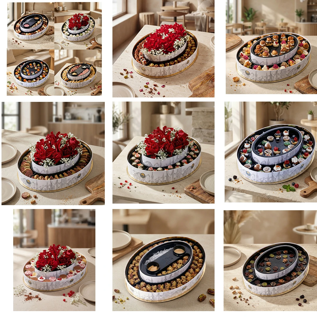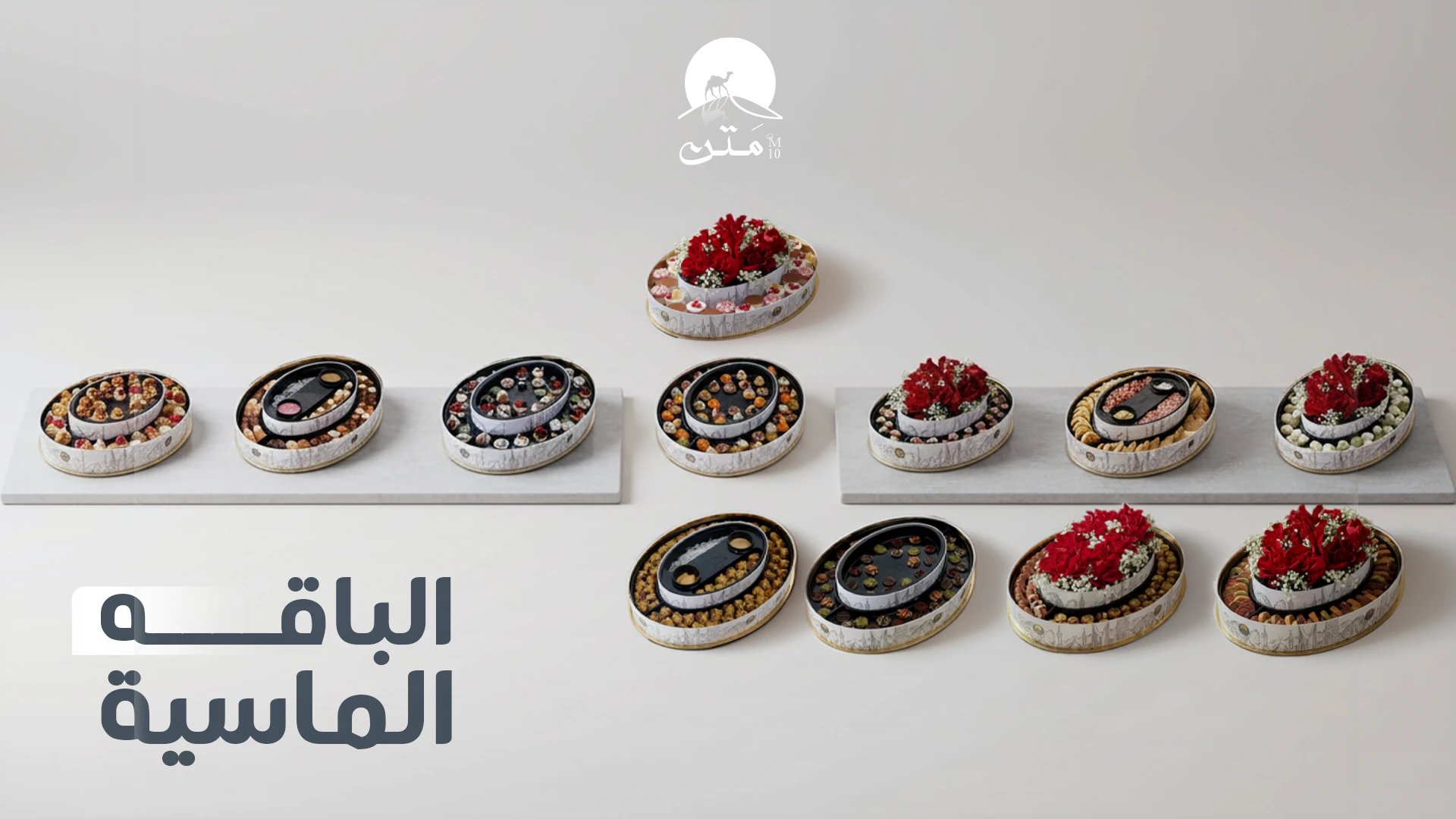 باقة مَتن الفاخرة للضيافة – 25 صينية متنوعة من المعجنات، الكبة، الحلويات الفاخرة، التمر، والحلقوم
