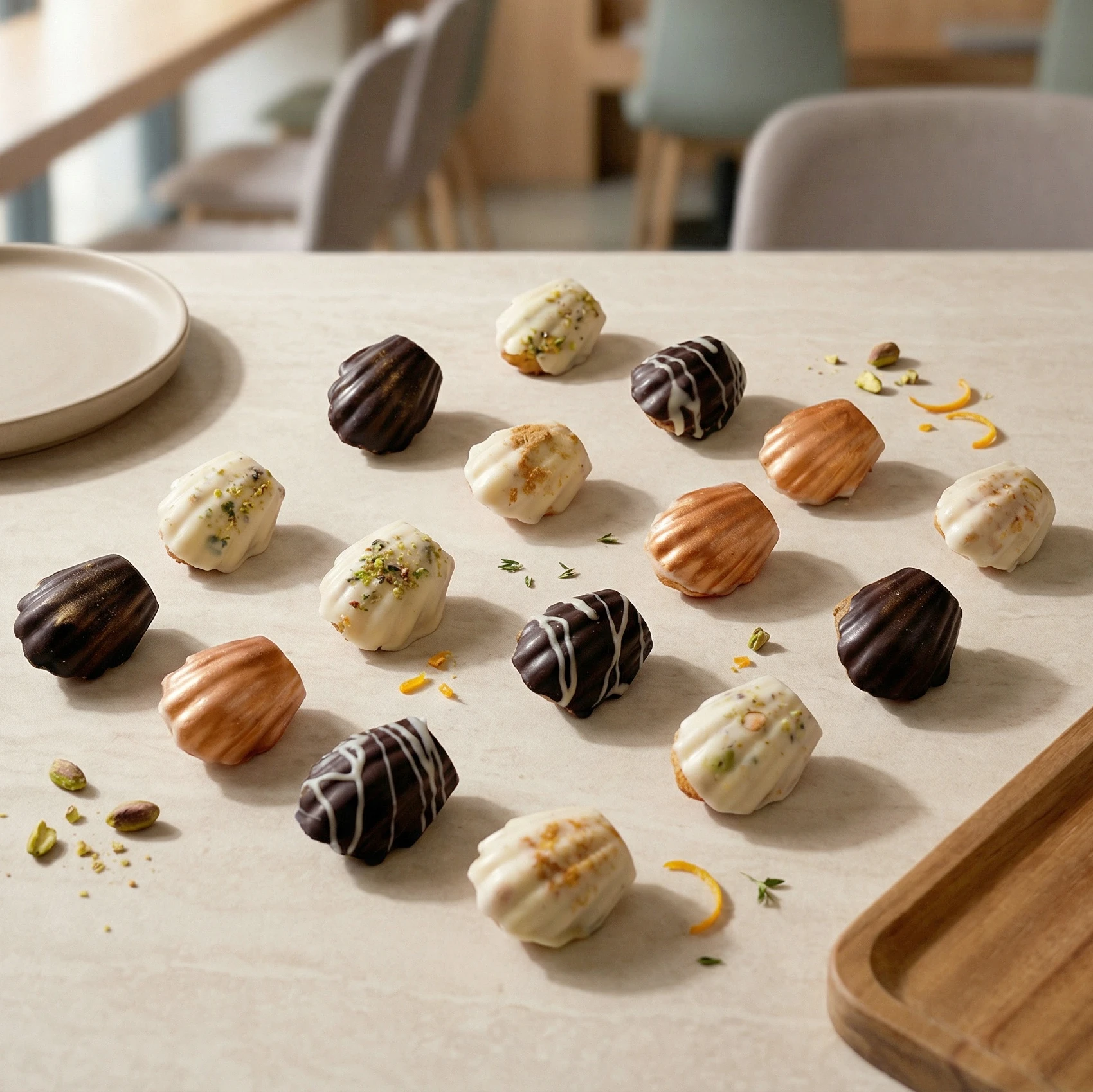 مكس مادلين محضّرة بعناية، تجمع بين النكهات الكلاسيكية والمبتكرة، مثالية لضيافة القهوة والمناسبات.